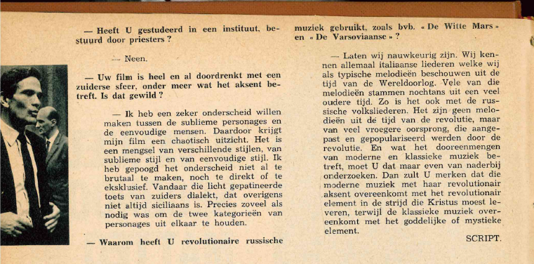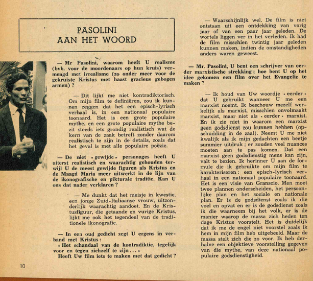 Colloquio con Pasolini, intervista su «Film en Televisie», n. 92, gennaio 1965, per il Vangelo secondo Matteo.